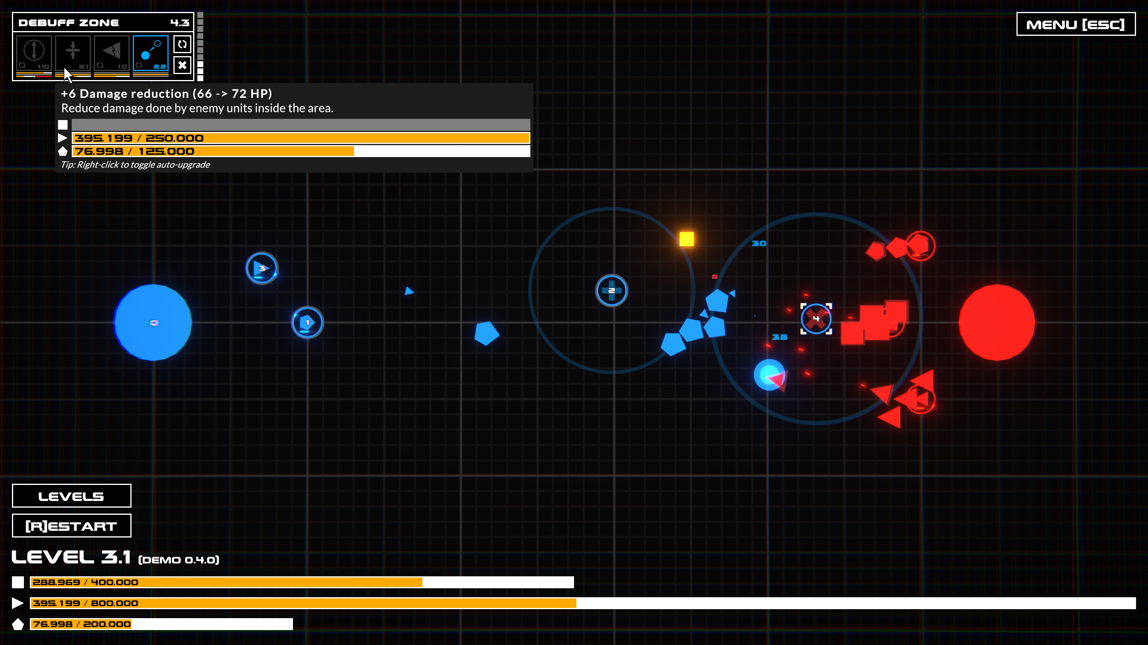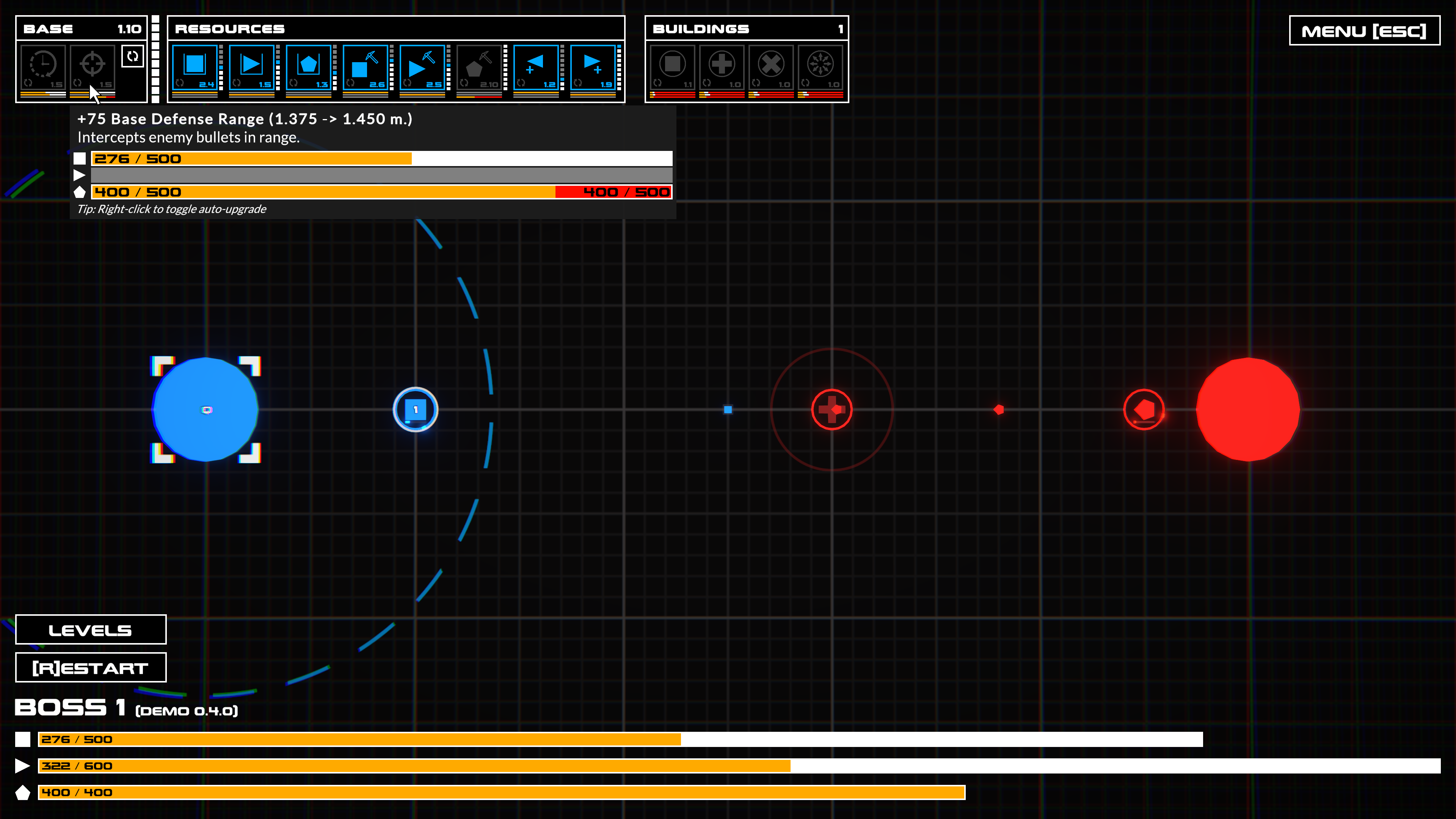 Fun game! I only realised fairly late that upgrades increase the cost of similar upgrades, some tooltip about that would be nice. A way to sell upgrades and buildings would help, given this mechanic (I know there is a respec button, but that is not ideal)