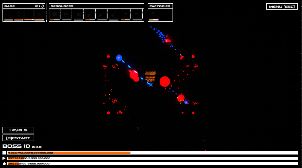 Scrolling around with arrow keys or right-click-drag would be very nice, if you have any factories in unreachable positions (would be nice if factories "bounced" out if they are placed/collide with the base too, a factory placed in the base by accident is permanently unreachable).